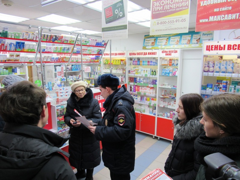 Вместе с ребятами Иван Владимирович посетил пожилых граждан, которым напомнил о способах совершения мошеннических действий в отношении пенсионеров и раздал памятки, где подробно расписано о том, как не стать жертвой преступников. Затем студенты вместе с участковым отправились в городские аптеки, где фармацевтам в очередной раз напомнили о необходимости использования детектора банкнот.