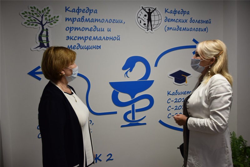 В частности, специалисты побывали в корпусе "С", где обучаются будущие служители медицины. В 2019 году корпус обновился благодаря капитальному ремонту здания. Как отмечает декан медицинского факультета Валентина Диомидова, созданы отличные условия для занятий: аудитории оснащены мультимедийным оборудованием, закуплена мебель и многое другое.