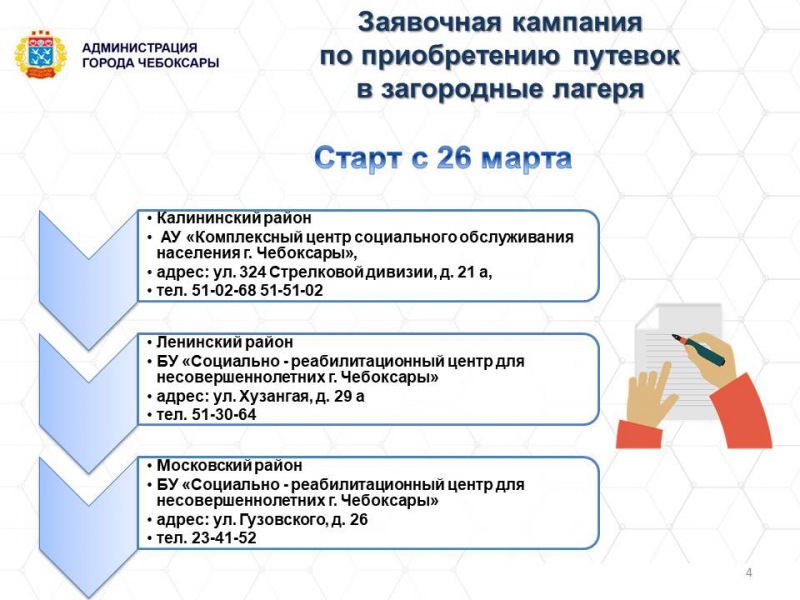 В этом году в Чебоксарах будут работать 3 муниципальных загородных и 38 пришкольных лагеря. В настоящее время все учреждения проводят работу по получению санитарно-эпидемиологического заключения. Об этом сообщается в пресс-релизе, опубликованном на сайте Администрации г. Чебоксары Чувашской Республики.