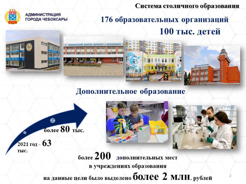 По информации управления, 2023 году в столице Чувашии дополнительное образование получают более 80 тысяч юных горожан (в 2021 году - 63 тыс. детей).