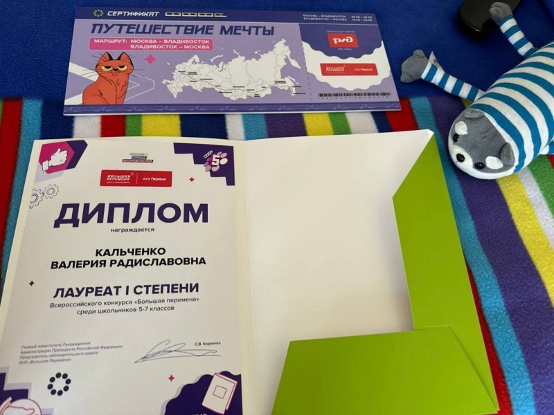 Учащаяся лицея № 18 Валерия Кальченко стала победителем финала Всероссийского конкурса "Большая перемена", среди учеников 5-7 классов, который проходил в рамках 8 смены МДЦ "Артек" и получила главный приз - "Путешествие мечты". О этом сообщается в пресс-релизе Администрации г. Новочебоксарска Чувашской Республики.