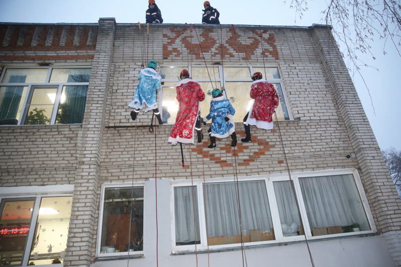 Десант Дедов Морозов спустился с крыши в "НеШколу" к детям