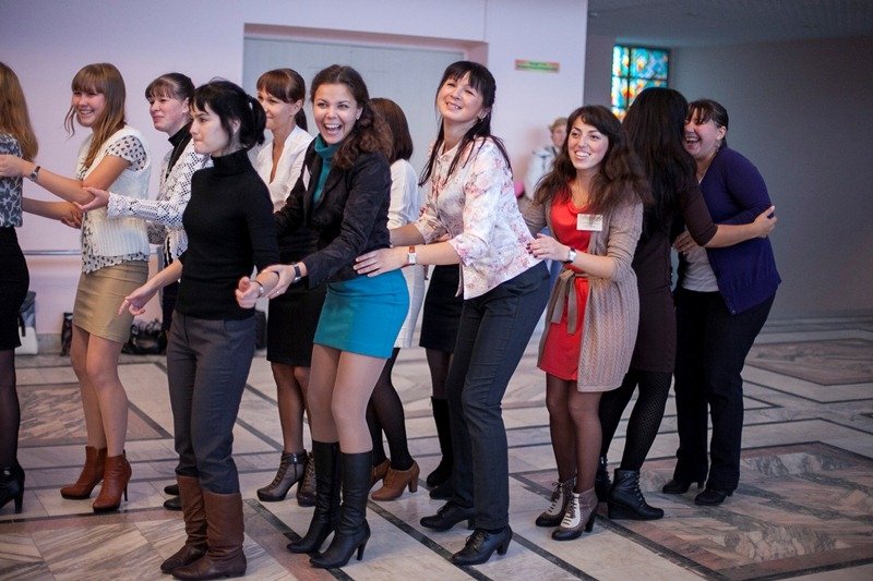 Вторая часть программы посвящения была направлена на знакомство и командообразование. Педагоги были разделены на 6 команд и побывали на различных станциях: Танцевальная, «Крокодил», театральная, презентация работы СМПР, «Кочки» и «Лиана». Ведущими станций выступили такие же молодые педагоги, члены Совета молодых педагогических работников города Чебоксары. Танцевальный мастер класс повел педагог дополнительного образования высшей категории Дворца творчества Светлана Владимировна Григорьева.