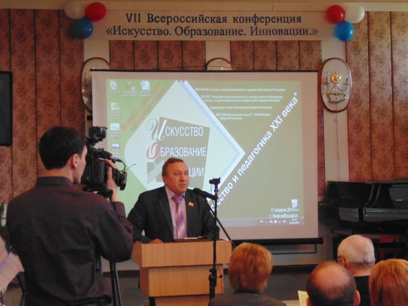 Приветствовали участников VII Всероссийской конференции «Искусство. Образование. Инновации»: Глава города Новочебоксарска Матвеев Олег Аркадьевич; начальник отдела культуры администрации города Новочебоксарска Макаров Владимир Елисеевич; заслуженный работник культуры Чувашской Республики, директор Детской школы искусств города Новочебоксарска, депутат Новочебоксарского городского Собрания депутатов Петрова Ольга Исааковна; член Попечительского совета Новочебоксарской детской школы искусств, директор Новочебоксарского кабельного телевидения Клычкова Алла Юрьевна.