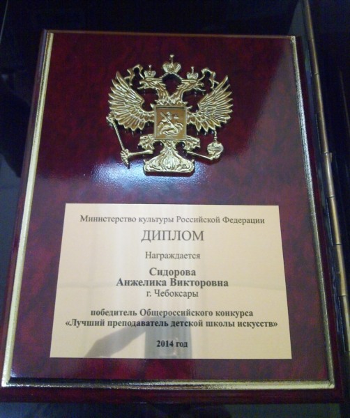 Заслуженный работник культуры Чувашской Республики и Российской Федерации, преподаватель Чебоксарской детской музыкальной школы им. С.М. Максимова» Анжелика Сидорова награждена почетным дипломом лауреата Общероссийского конкурса «Лучший преподаватель детской школы искусств».