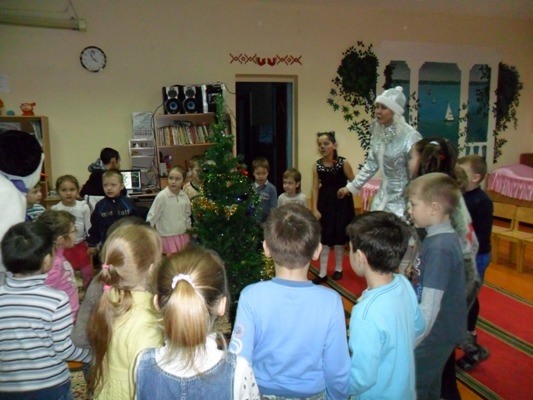 Детвору еще раз поздравили с наступившим новым годом сказочные герои – Веселый снеговик, Котенок и Мышка. Затем ребята дружно позвали Дедушку Мороза и Снегурочку, но оказалось, что из-за теплой погоды, самый главный зимний волшебник заболел и начал таять, поэтому его срочно отправили на Северный полюс и праздник продолжился без него. Но дети нисколько не расстроились, потому что Снегурочка приготовила для них много интересных игр и конкурсов, в которых они приняли самое активное участие.