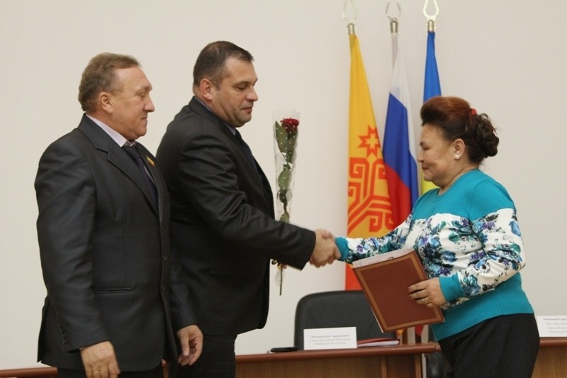 Зинаида Степановна и Сергей Петрович поздравили всех собравшихся с юбилейной датой и также наградили Почётной грамотой Чувашской Республиканской организации Профсоюза образования за активное участие в деятельности профсоюзной организации и Почётной грамотой Государственного Совета Чувашской Республики.
