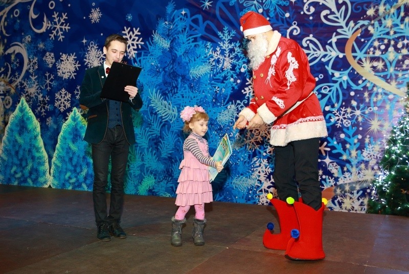 Для награждения участников и победителей конкурсов пригласили на новогоднее представление в Академию волшебства, где каждый смог почувствовать приближение праздника и окунуться в сказку. А после возле елки "наоборот" прошла большая развлекательная программа. Дети играли в игры, водили хороводы и, конечно же, познакомились с Дедом Морозом и Снегурочкой.