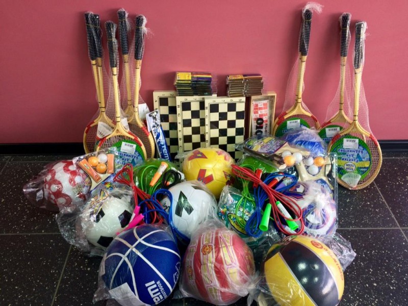 Чтобы каникулы прошли с пользой для здоровья, ребятам подарили футбольные, волейбольные и баскетбольные мячи, наборы для игры в теннис и бадминтон, скакалки. Для интересного отдыха с друзьями пригодятся шахматы и русское лото.