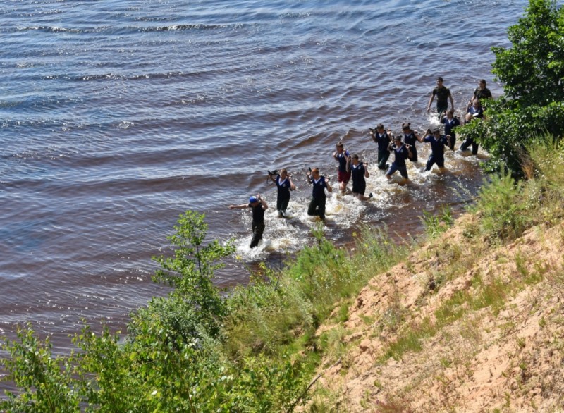 При совершении марш-броска ребятам пришлось преодолеть препятствия в экстремальных условиях. Это и внезапный условный обстрел противником, и преодоление водных преград, и эвакуация раненых с поля боя.