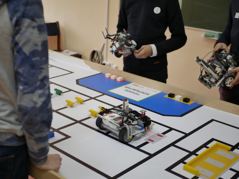 Школьники постарше собирали роботов с автономной системой. В категории «Сокращение пищевых отходов» автоматизированные машины отсортировывали фрукты по качеству и внешнему виду, а после доставляли их на безотходную обработку.