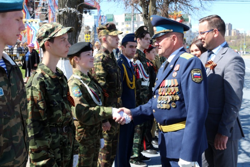 "Вы являетесь полноправными защитниками нашей родины – Российской Федерации. Глядя на ваши стройные ряды, понимаешь, что наше будущее в надежных руках. Вам есть что защищать, вам есть, за что бороться. И всегда необходимо расти смелыми, сильными и патриотами нашей родины и, конечно, всегда помнить о нашей Великой Победе 9 мая над немецкими захватчиками", – отметил Евгений Кадышеви поздравил всех с наступающим Днем Победы.