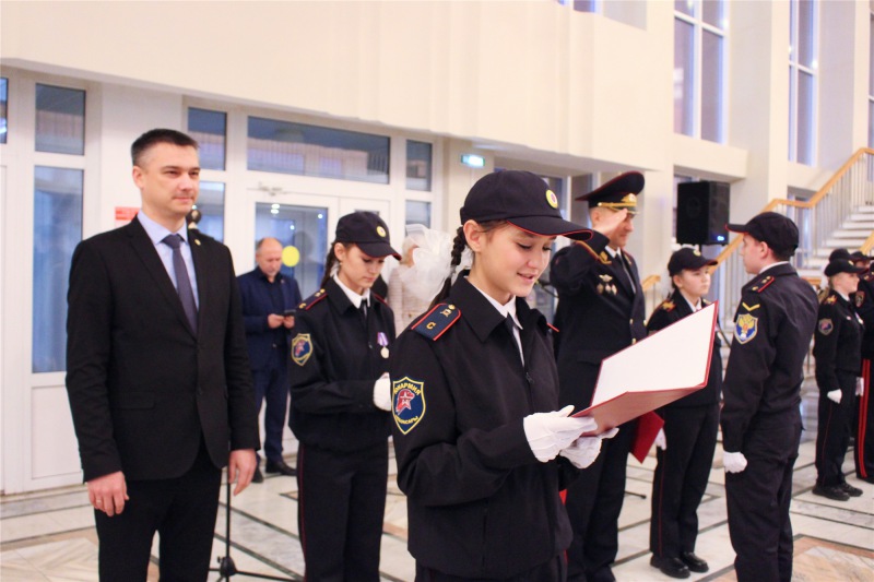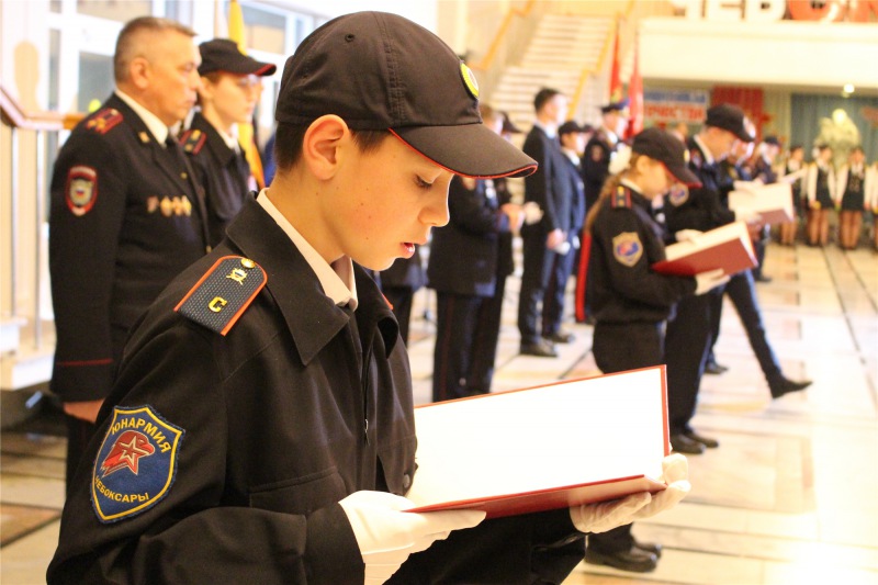 Вчера состоялась торжественная церемония принятия клятвы слушателями 1 курса Детской полицейской академии и вступление их в общественное движение "ЮНАРМИЯ". На место проведения были внесены знамя Детской полицейской академии и флаг ВВПОД "ЮНАРМИЯ".