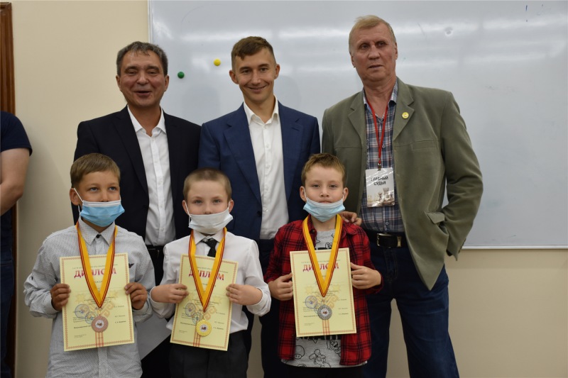 Торжественную церемонию открытия шахматной школы в стенах альма-матер предварял детский турнир, абсолютным победителем которого стал 14-летний воспитанник столичного лицея №44 Антон Смирнов. Ему выпала честь сыграть блиц - партию с Сергеем Карякиным, а в конце получить личные рекомендации от кумира. Впрочем, заслуженные дипломы и медали, а также памятные сертификаты из рук Сергея Карякина получили все участники детского шахматного турнира.