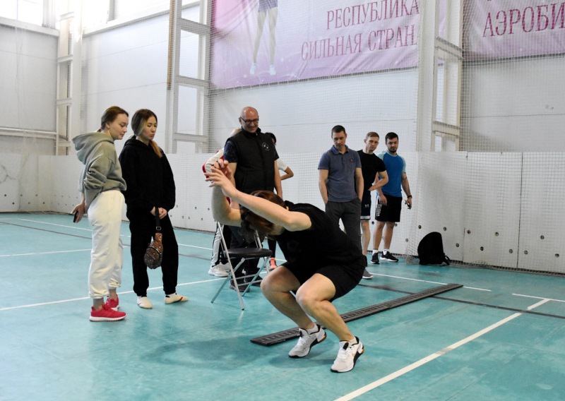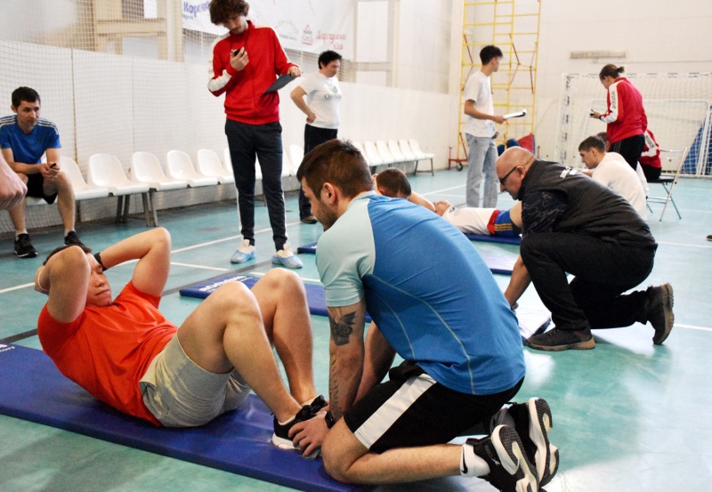 Приверженцы спорта продемонстрировали уровень своей физической подготовки в выполнении различных нормативов, среди которых: наклоны вперед из положения стоя на гимнастической скамейке, подтягивания на перекладине, поднимание туловища из положения лежа на спине, сгибание и разгибание рук в упоре лежа, плавание на 50 м.