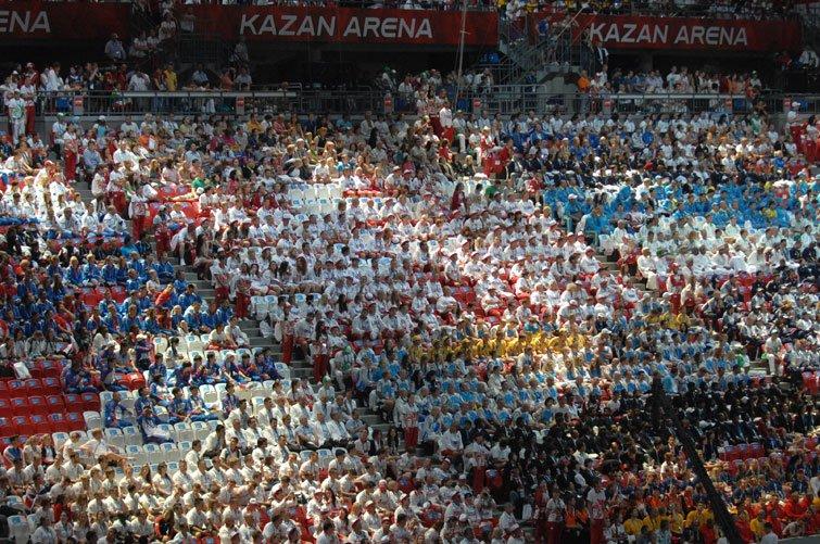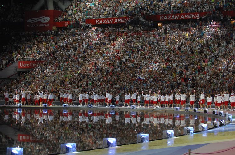 К слову, никогда еще не приходилось видеть добровольцев в таком количестве. Они повсюду: на спортивных сооружениях, на улицах, возле специальных палаток. Отмечалось, что на период Универсиады задействовано порядка 20 тысяч человек. Молодые люди и девушки из разных городов отвечают за организационные моменты в проведении спортивных состязаний, за проведение культурных мероприятий в городе, раздают программки на соревнования, газеты на русском и английском языке и т.д.