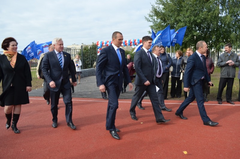 В торжественной церемонии принял участие Глава республики Михаил Игнатьев. Он отметил, что новый стадион - это хороший подарок новочебоксарцам ко Дню города. Глава республики подчеркнул, что в последние годы спортивная инфраструктура Новочебоксарска заметно укрепилась, построен 50-метровый бассейн, проведена масштабная реконструкция легкоатлетического манежа, Ледового дворца «Сокол». Достраивается единственный в республике конно-спортивный комплекс. Все это открывает дополнительные возможности для приобщения к систематическим занятиям физической культурой и спортом детей, молодежи и взрослого населения.