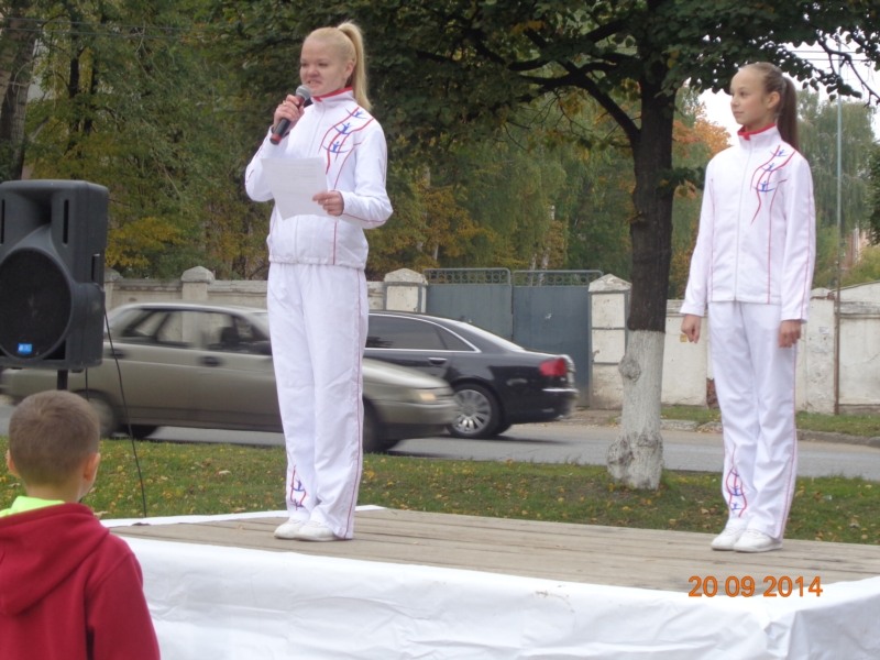 Вели зарядку очаровательные девушки – мастер спорта по спортивной аэробике, член сборной команды Чувашской Республики по спортивной аэробике Ирина Афанасьева и кандидат в мастера спорта по спортивной аэробике, член сборной команды Чувашской Республики по спортивной аэробике Александра Гордина под руководством заслуженного тренера Чувашской Республики по спортивной аэробике, президента Федерации спортивной аэробики Чувашской Республики Оксаны Дъячук. Все дружно, вместе повторяли спортивный комплекс упражнений за спортсменами на сцене.