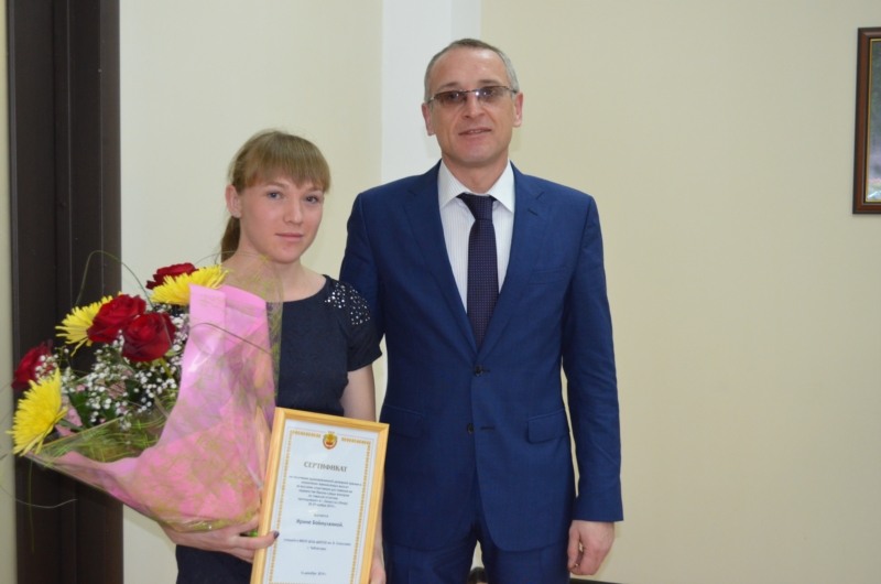 За высокие спортивные достижения руководитель Минспорта Чувашии Сергей Мельников наградил единовременными денежными премиями 22 человека. Среди них – тяжелоатлетка Ирина Баймулкина, в ноябре ставшая абсолютной победительницей юниорского первенства Европы в весовой категории до 53 кг, ее личный тренер Геннадий Иванов. Кроме единовременной премии, в соответствии с постановлением Правительства республики, с нового года Ирине будет назначена ежемесячная стипендия в размере 6 тысяч рублей.