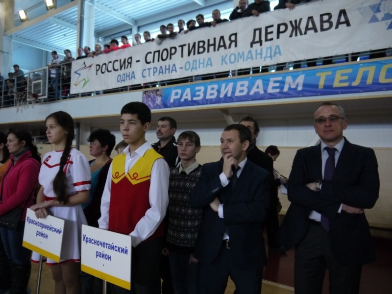 Церемония торжественного открытии праздника сельского спорта прошла в физкультурно-спортивном комплексе «Присурье», построенном здесь несколько лет назад в рамках реализации федеральной целевой программы развития спорта. В спортивном зале современного спорткомплекса собрались самые спортивные труженики села из всех муниципальных районов республики. От имени Главы Чувашии Михаила Игнатьева участников, организаторов и гостей спортивного праздника тепло поприветствовал член республиканского правительства – руководитель Минспорта Чувашии Сергей Мельников. Глава споритвного ведомства отметил, что Ядринский район заслужил проведение главного зимнего спортивного форума республики своими успехами как в спорте, так и производстве сельскохозяйственной продукции. «Сельский спорт - основа спорта высших достижений. Так как 80% прославленных чувашских спортсменов – это выходцы из села, можно с уверенностью сказать, что спортивные успехи нашего региона во многом зависят от развития спортивного движения на селе», - сказал Сергей Мельников. Он выразил благодарность руководству и жителям Ядринского района за гостеприимство и радушие, с которым они встретили сегодня участников сельских Игр. В церемонии открытия также приняли участие депутат Государственного Совета Чувашии Валерий Павлов, глава Ядринского района Александр Краснов и другие почётные гости.