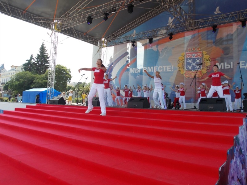 Президент Федерации фитнес-аэробики Чувашии Оксана Вербина и чемпионка мира и Европы, серебряный призер Олимпийских игр по спортивной ходьбе, заслуженный мастер спорта Олимпиада Иванова провели спортивный флэшмоб.