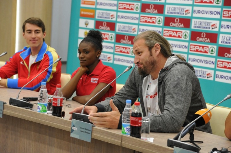 На вопросы журналистов ответили спортсмены – участники чемпионата: чемпионка мира в тройном прыжке Екатерина Конева (Россия), призёр чемпионата мира 2013, победитель командных чемпионатов Европы 2013 и 2014 гг. в барьерном беге Сергей Шубенков (Россия), лидер мирового сезона в толкании ядра Кристина Шваниц (Германия), чемпионка мира среди юниорок в беге на 100 м Дина Ашер-Смит (Великобритания), двукратный олимпийский чемпион 2008 и 2012 годов в толкании ядра Томаш Маевски (Польша).