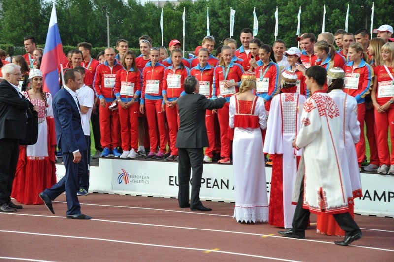 В церемонии приняли участие представители Европейской легкоатлетической ассоциации во главе с ее Президентом Свеном Арне Хансен, Министр спорта Российской Федерации Виталий Мутко, Врио Главы Чувашской Республики Михаил Игнатьев, министр физической культуры и спорта Чувашии Сергей Мельников, глава города Чебоксары Леонид Черкесов, и.о. президента Всероссийской федерации легкой атлетики Вадим Зеличенок и член Женского комитета ИААФ, Олимпийская чемпионка, обладательница 5 Олимпийских медалей, многократная чемпионка мира Татьяна Лебедева.