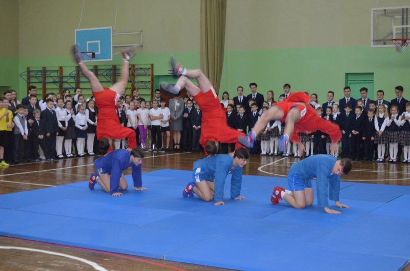 Затем почётные гости Форума посетили Чебоксарскую Среднюю общеобразовательную школу №59 с углубленным изучением отдельных предметов. На базе школы не первый год успешно работают спортивные секции по самбо. В спортивном зале собрались младшие школьники. Перед ними с показательными номерами выступили ведущие спортсмены Чувашии – члены сборных команд России.