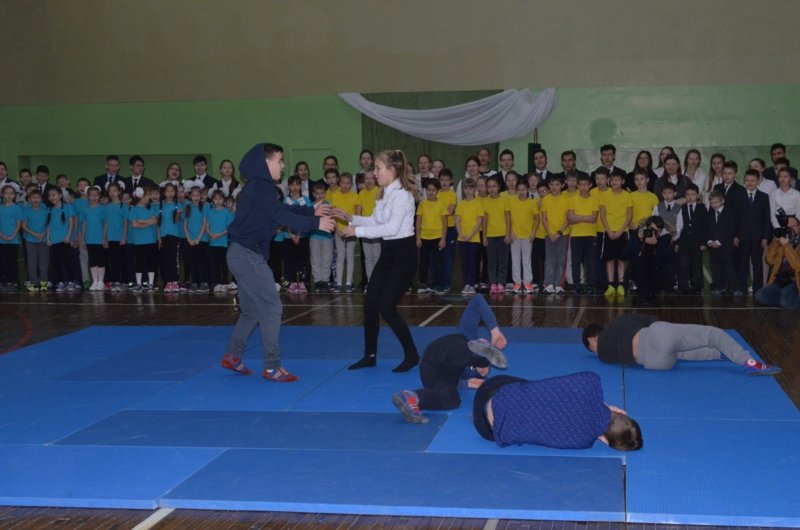 Показательные выступления самбистов увлекли и участников урока, и зрителей. Ребята услышали короткую информацию об основах современной борьбы самбо и успехах спортсменов Чувашии.