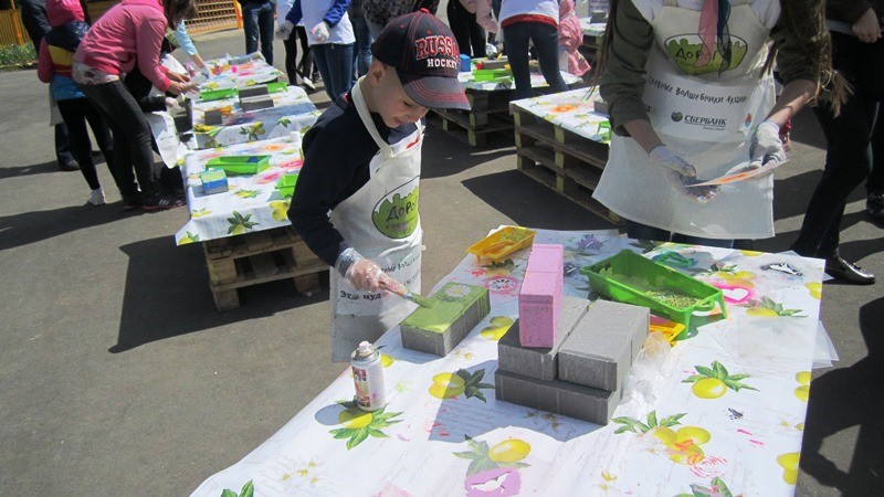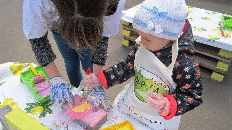 Ни на минуту не оставалась без своих маленьких посетителей оригинальная площадка, на которой проходила социальная акция "Дорога в изумрудный город". Ребята с большим интересом разрисовывали разноцветными красками кирпичики, которые впоследствии станут частью первой в Чувашии площадки для детей с ограниченными возможностями.