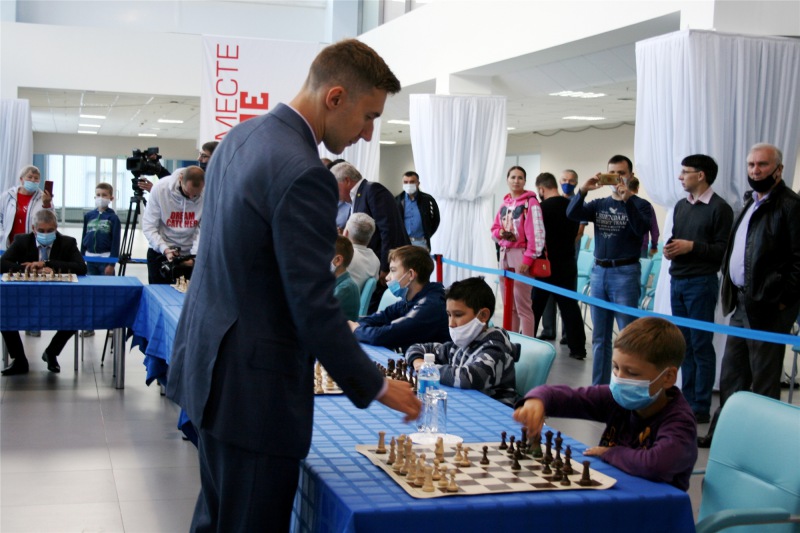 Сегодня в стенах Ледового дворца "Чебоксары Арена" Заслуженный мастер спорта России, вице-чемпион мира по шахматам, международный гроссмейстер Сергей Карякин провел сеанс одновременной игры с шахматистами Чувашии