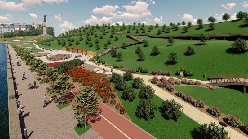 Историческая зона протянется от сквера Екатерины до монумента Матери-Покровительницы: будут организованы лестничные спуски к лодочной станции, скамья-галька с подсветкой.