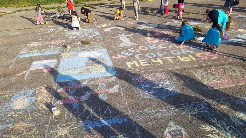 В считанные мгновения дорожное полотно превратилось в художественную галерею, где была представлена экспозиция "Чебоксары - город мечты".
