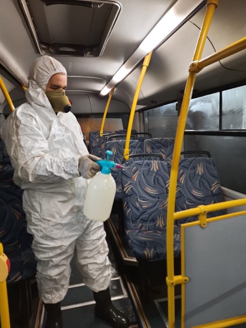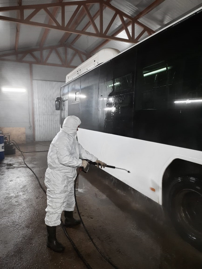 Все автобусы и троллейбусы перед выходом на маршрут обрабатываются путём распыления дезраствора. По окончании рабочего дня процедура повторяется.