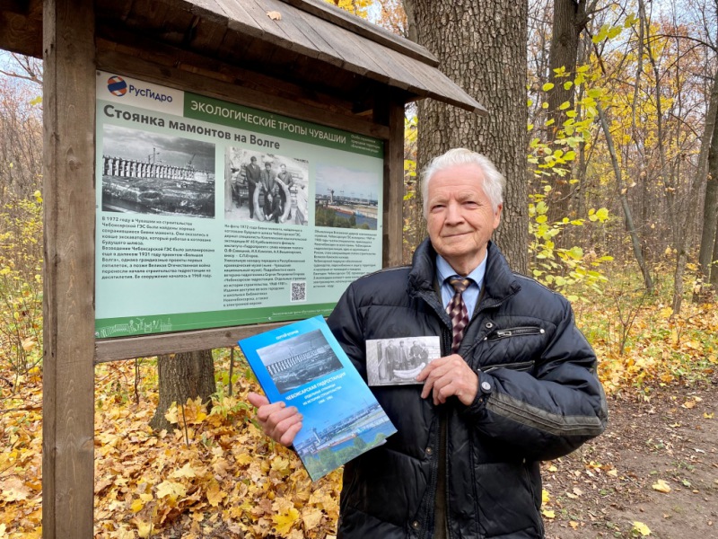На открытие «Тропы мамонта» гидроэнергетики пригласили вдохновителя эколого-исторического маршрута - ветерана-гидротехника Сергея Петровича Егорова. Его фото 1972 года с бивнями мамонта, найденными при возведении Чебоксарской ГЭС, было опубликовано в книге воспоминаний «Чебоксарская гидростанция. Отдельные страницы из истории строительства». Издать редкие архивные материалы автору помогла Чебоксарская ГЭС, сборник пополнил фонды всех городских и школьных библиотек Новочебоксарска. История уникальной находки представлена на одном из стендов экотропы, там же по QR-коду можно познакомиться с электронной версией фотоальбома об истории возведения ГЭС.