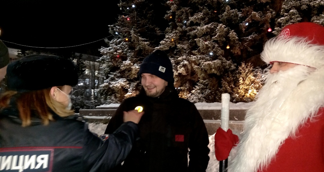 Автоинспектор отдела ГИБДД столичного Управления МВД в костюме Деда Мороза, общественники и студенты Чувашского государственного университета им. И.Н. Ульянова вышли на одну из самых оживлённых улиц города и раздали пешеходам световозвращающие элементы. Проект призван привлечь внимание горожан к своей безопасности и использовать светоотражатели, поскольку именно они позволяют сделать человека более заметным на дороге в тёмное время суток.