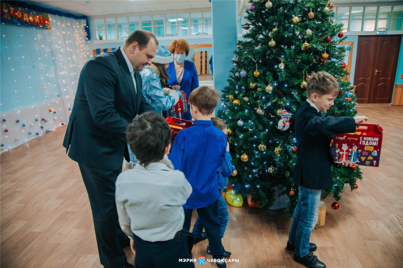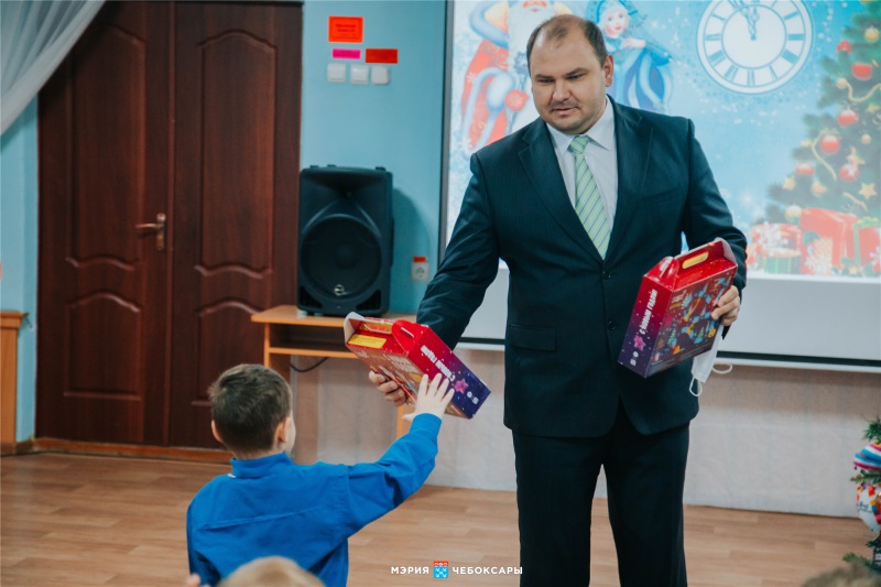 Для детей "Социально-реабилитационного центра для несовершеннолетних г. Чебоксары" Минтруда Чувашии сегодня был день новогодних чудес. Глава администрации города Чебоксары Денис Спирин вручил малышам сладкие подарки от Деда Мороза.