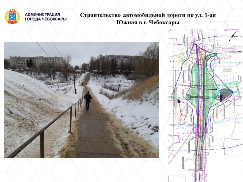 Новая дорога по ул. 1-я Южная. Она позволит соединить нижнюю часть Южного микрорайона с микрорайоном Альгешево. Объект планируется реализовать за 2 года. Протяженность участка строительства - 0,2 км, предварительная стоимость - 60 млн рублей. В данный момент проектная документация готовится к направлению на проверку в госэкспертизу.