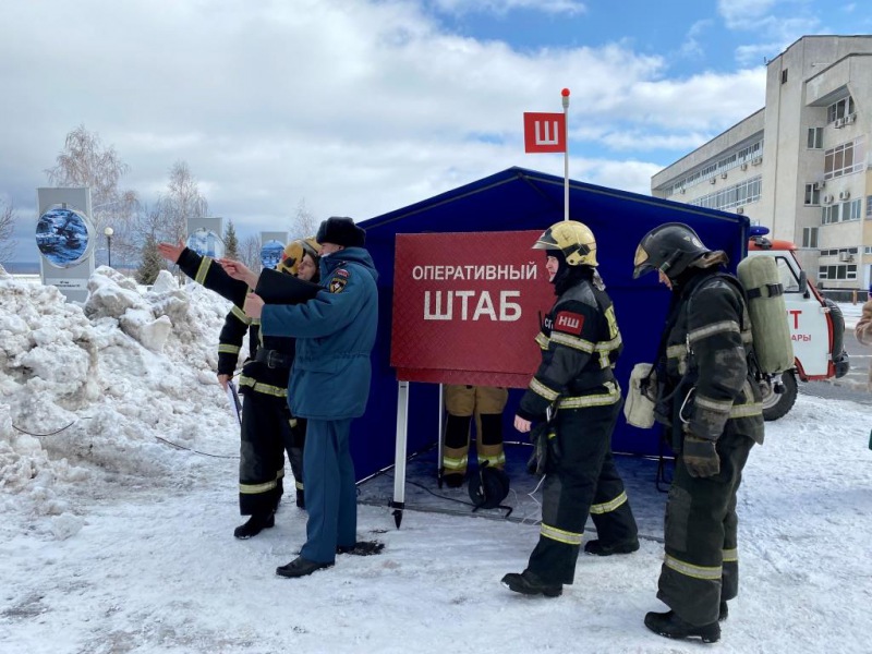 По тревоге на место условной чрезвычайной ситуации срочно прибыли боевые расчеты 8 пожарных частей Новочебоксарска и Чебоксар, спасатели НАСФ и приступили к ликвидации возгорания и его последствий.