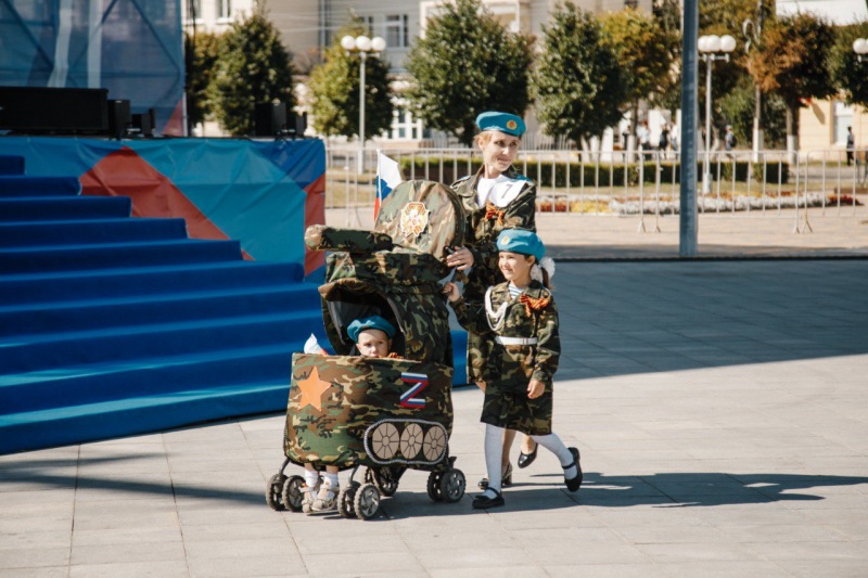 Маленький патриот: Семья Старостиных с коляской "Служу России"