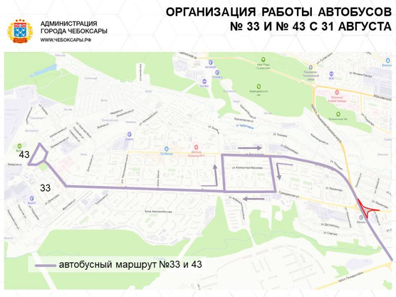 Автобусные маршруты №33 и 43 при движении в сторону Завода им. Чапаева пройдут по ул. Энтузиастов - ул. Грасиса - ул. Гражданская - ул. Социалистическая - ул. Коллективная. При движении в сторону Центрального рынка по ул. Гражданская - ул. Эльменя - ул. Энтузиастов и далее по существующей схеме.
