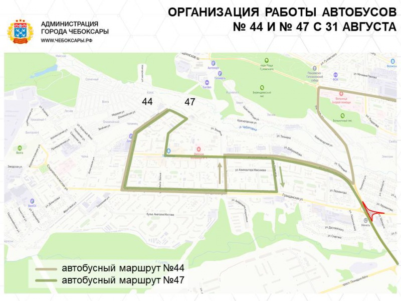 Автобусы по маршруту № 44 при следовании в мкр "Финская долина" и в обратном направлении пойдут по ул. Энтузиастов, ул. Эльменя, ул. Гражданская, ул. Чернышевского.