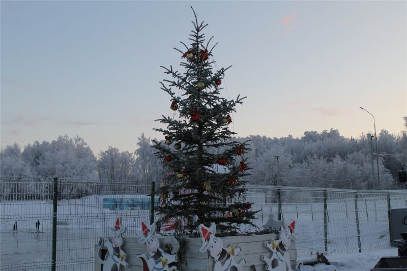 Праздничного настроения добавят любимый аттракцион "Колесо обозрения", а рядом расположилась ёлка с яркими огнями.