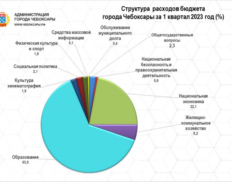Основную долю в структуре расходной части бюджета города Чебоксары составили расходы на финансирование отраслей социально-культурной сферы - 69,4 % от общей суммы расходов бюджета, национальной экономики - 22,1 %, жилищно-коммунального хозяйства - 5,2 %.