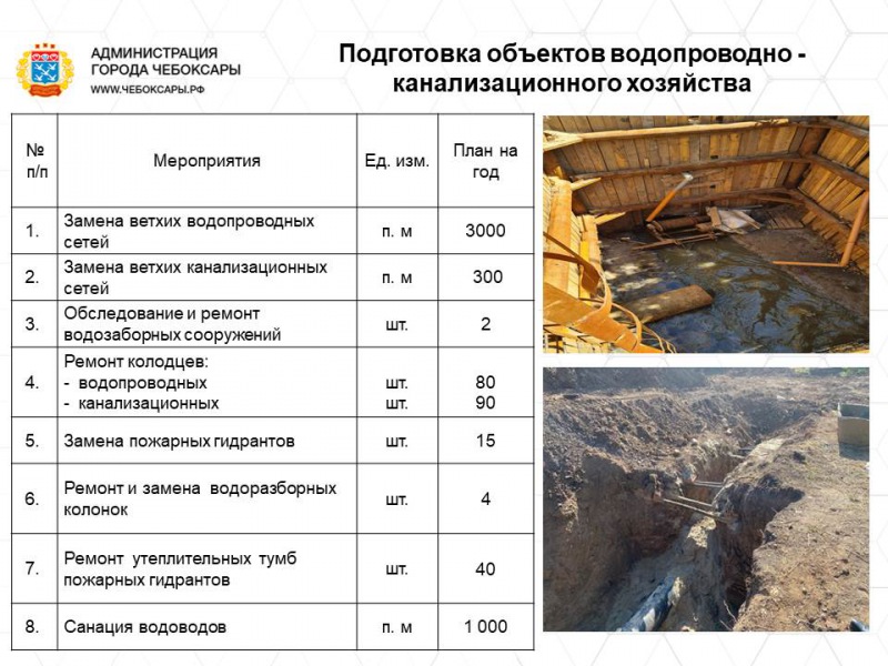 К новому отопительному сезону ресурсоснабжающим предприятиям предстоит подготовить 51 котельную (в т.ч. выполнить капитальный ремонт 5 котлов и текущий ремонт 169 котлов), 35 ЦТП, 56 трансформаторных и распределительных подстанций, отремонтировать 399,4 км сетей теплоснабжения, а также полностью заменить 14,7 ветхих труб горячего водоснабжения и теплоснабжения, 3 км сетей водоснабжения и 300 м канализационных сетей.
