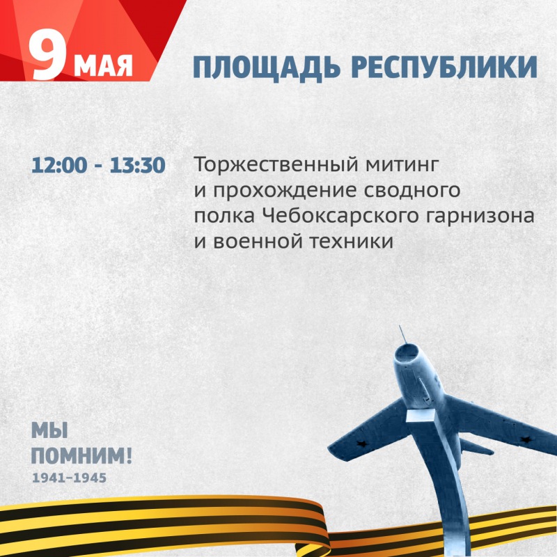 С 12.00 до 13.00 часов на площади Республики пройдет торжественный митинг и прохождение сводного полка Чебоксарского гарнизона и военной техники.