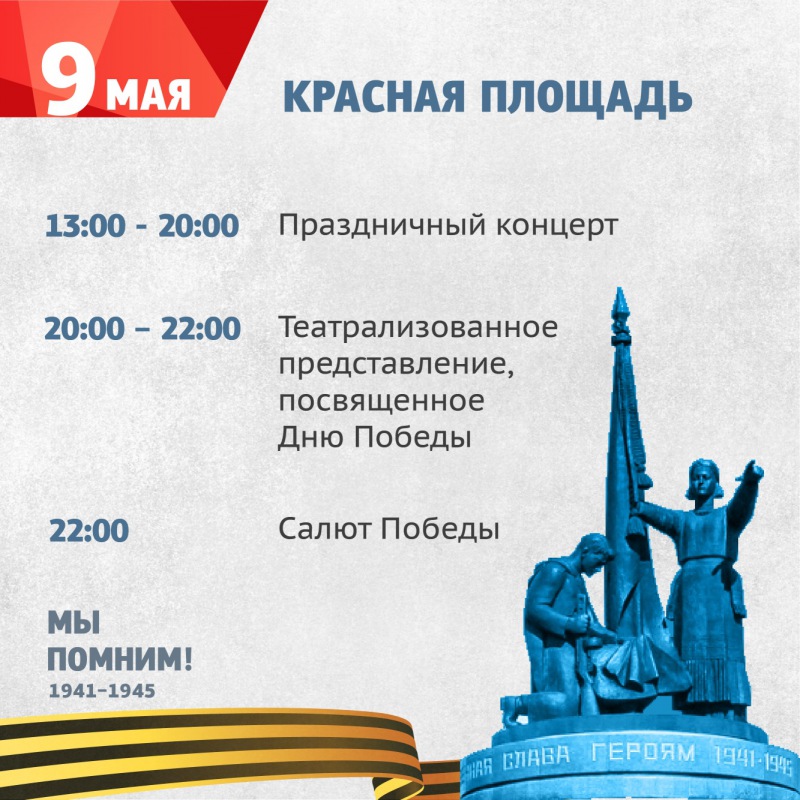 С 25 апреля на городских улицах волонтеры раздают георгиевские ленточки. Совместно с администрациями районов города в дворах, где проживают ветераны, пройдут концерты. Продолжатся Уроки мужества и "Разговоры о важном" с участием участников СВО.