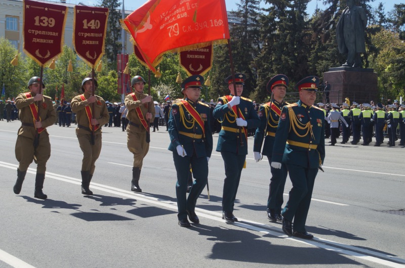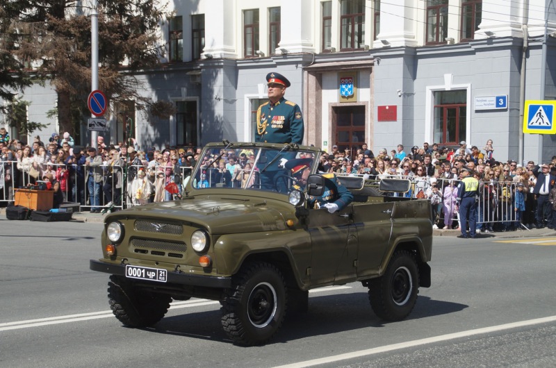 Далее центральные мероприятия переместились на Площадь Республики, где состоялся торжественный митинг и прохождение сводного полка Чебоксарского гарнизона и военной техники. Все желающие также cмогли прийти на праздничный концерт на Красную Площадь, а для любителей ритмично подвигаться на площадке возле ДК Хузангая прошёл "Вальс Победы" с участием танцевальных студий города.