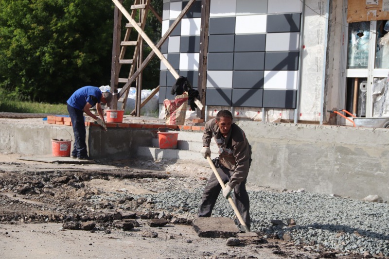 "Бывший кинотеатр "Атал" уверенно движется к "Месту встречи "Атал. Проверил ход работ. Преображение налицо," - отмечает Дмитрий Пулатов.