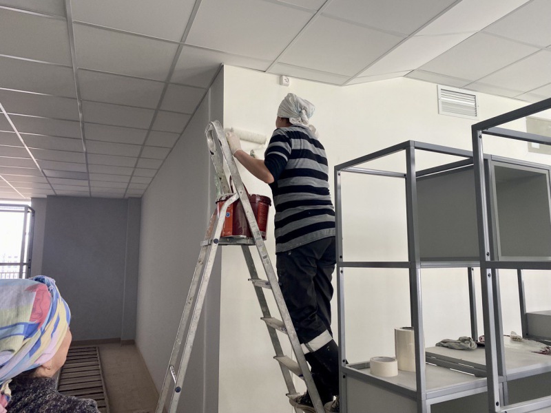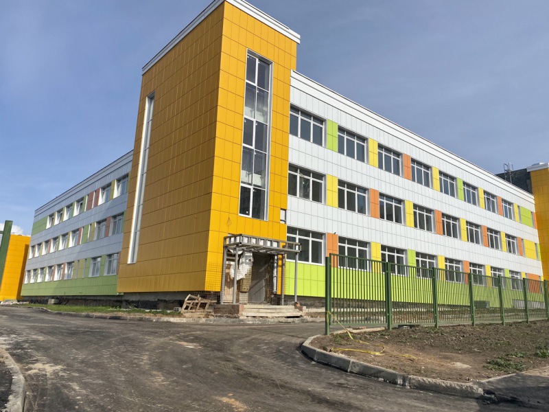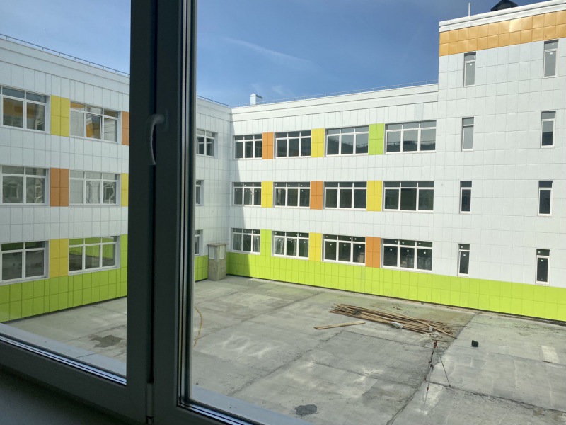 На конец сентября в первом и третьем блоках школы и учебных кабинетах завершены чистовые отделочные работы, во втором и четвертом блоках - устройство вентилируемого фасада, проездов и тротуаров, озеленение благоустроенных участков.